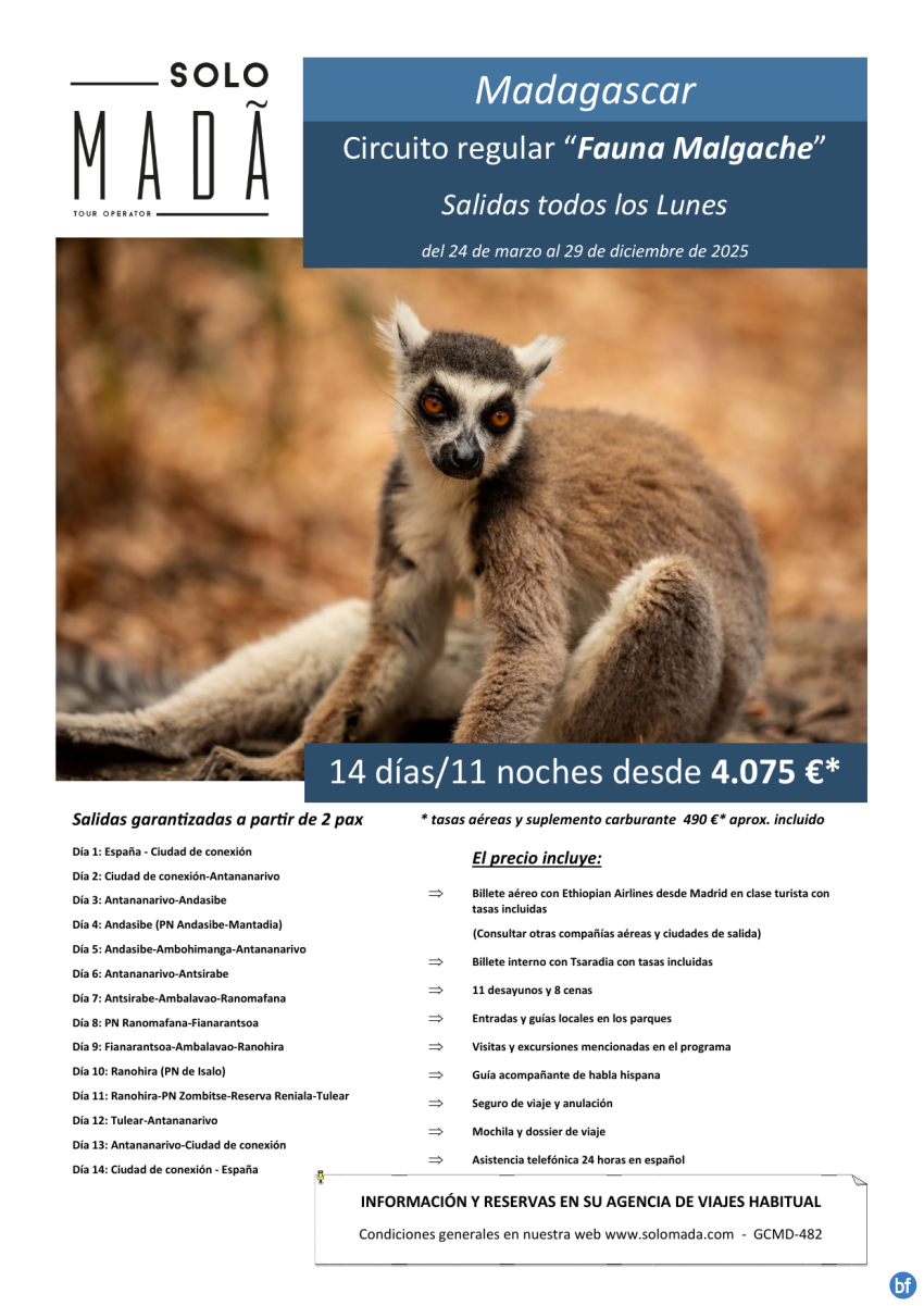 Madagascar salidas semanales "Fauna Malgache" 14 días: minigrupos con guia en español